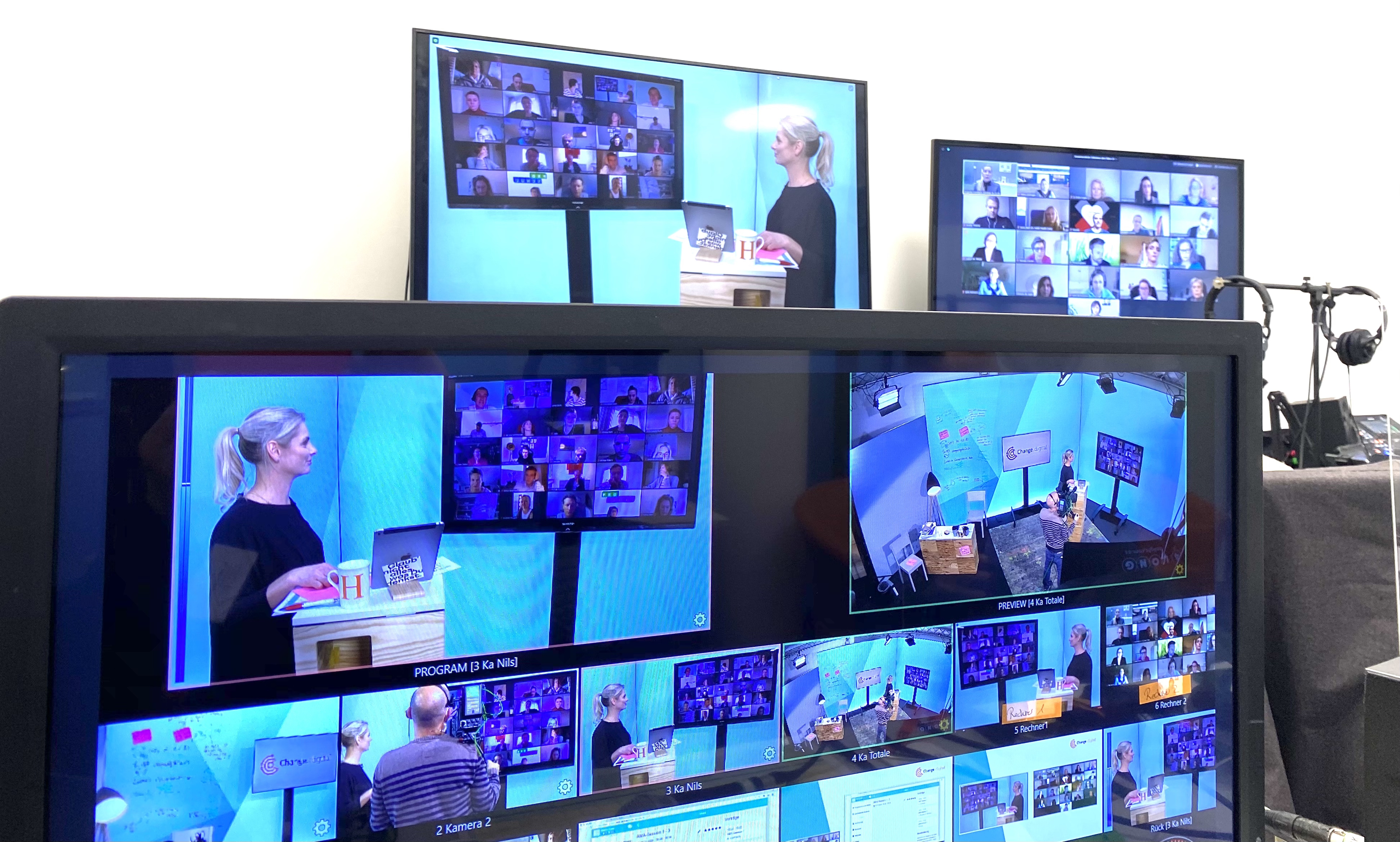 19 speakers about the issue of change and transformation and only two of them are live in the setting. We therefore utilize the setting, collect content, cluster it, guide interactions, use three settings with the moderator.