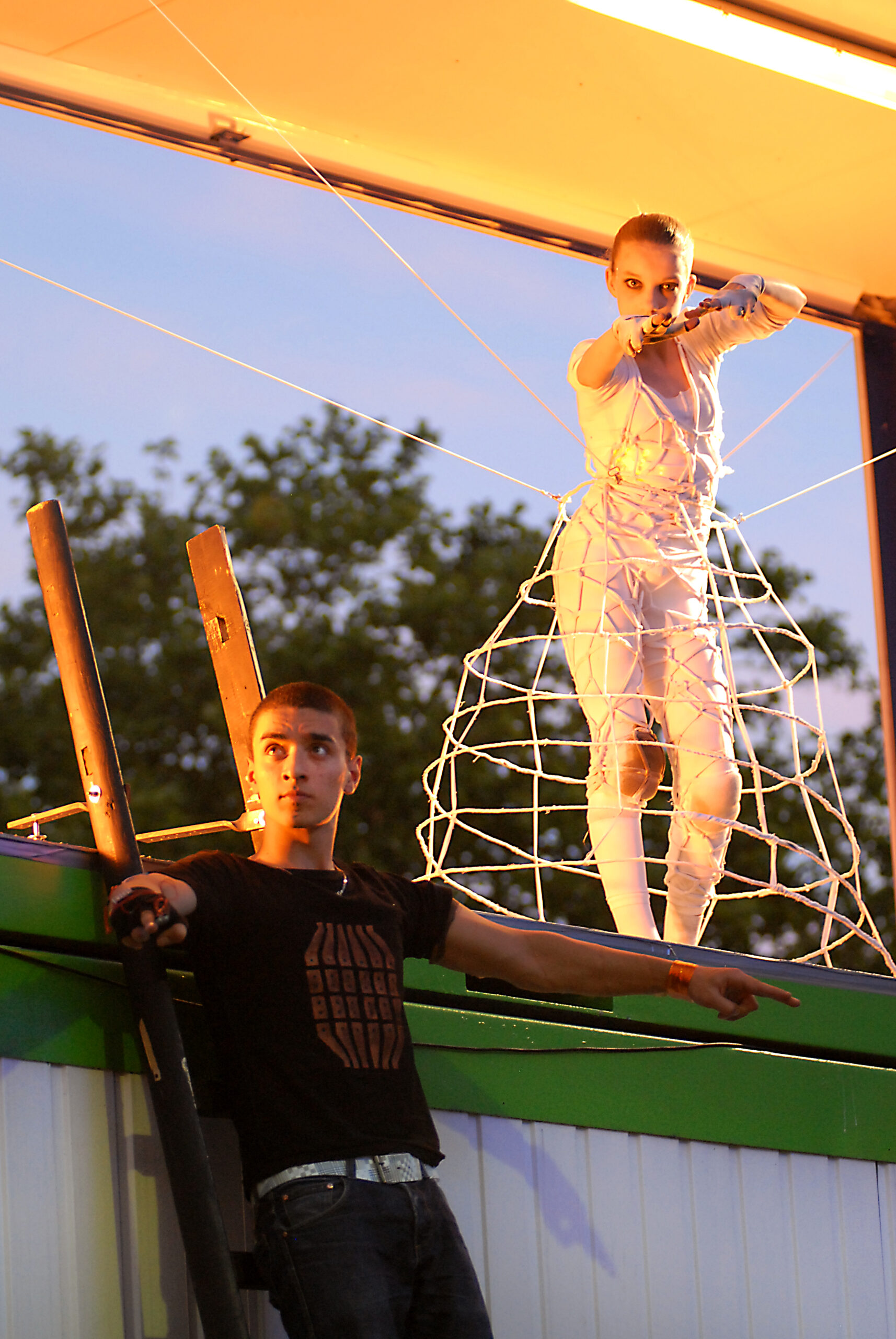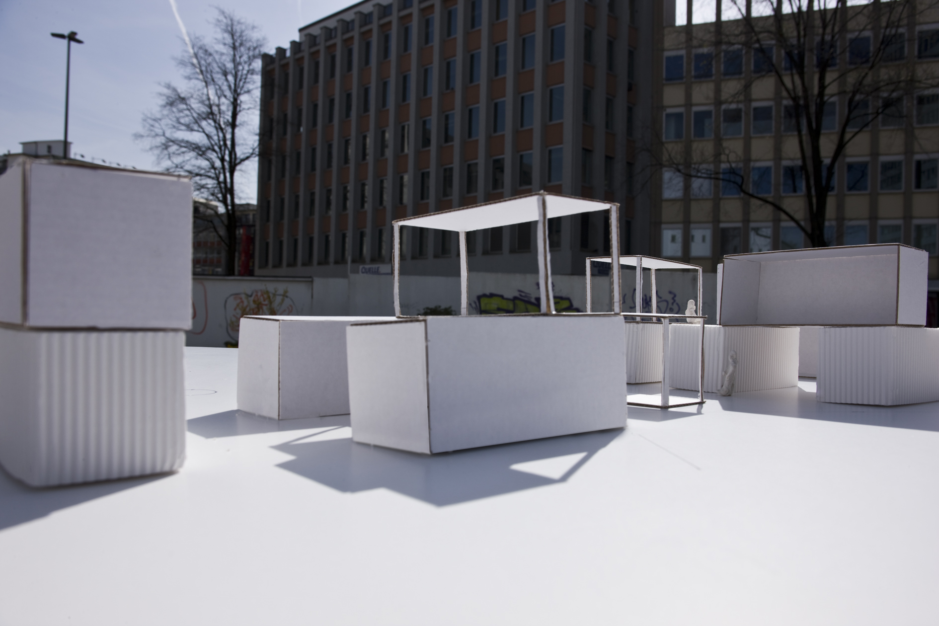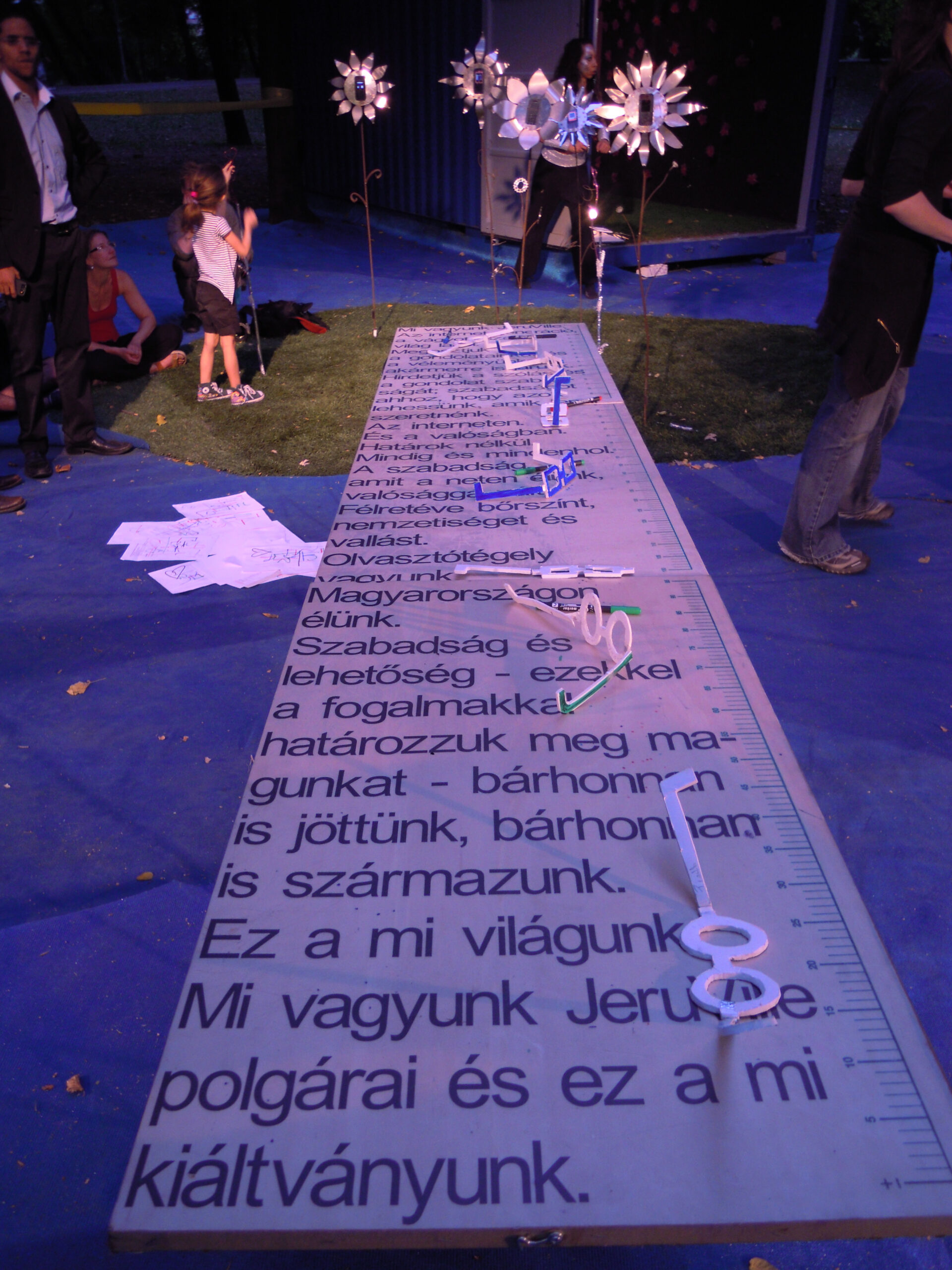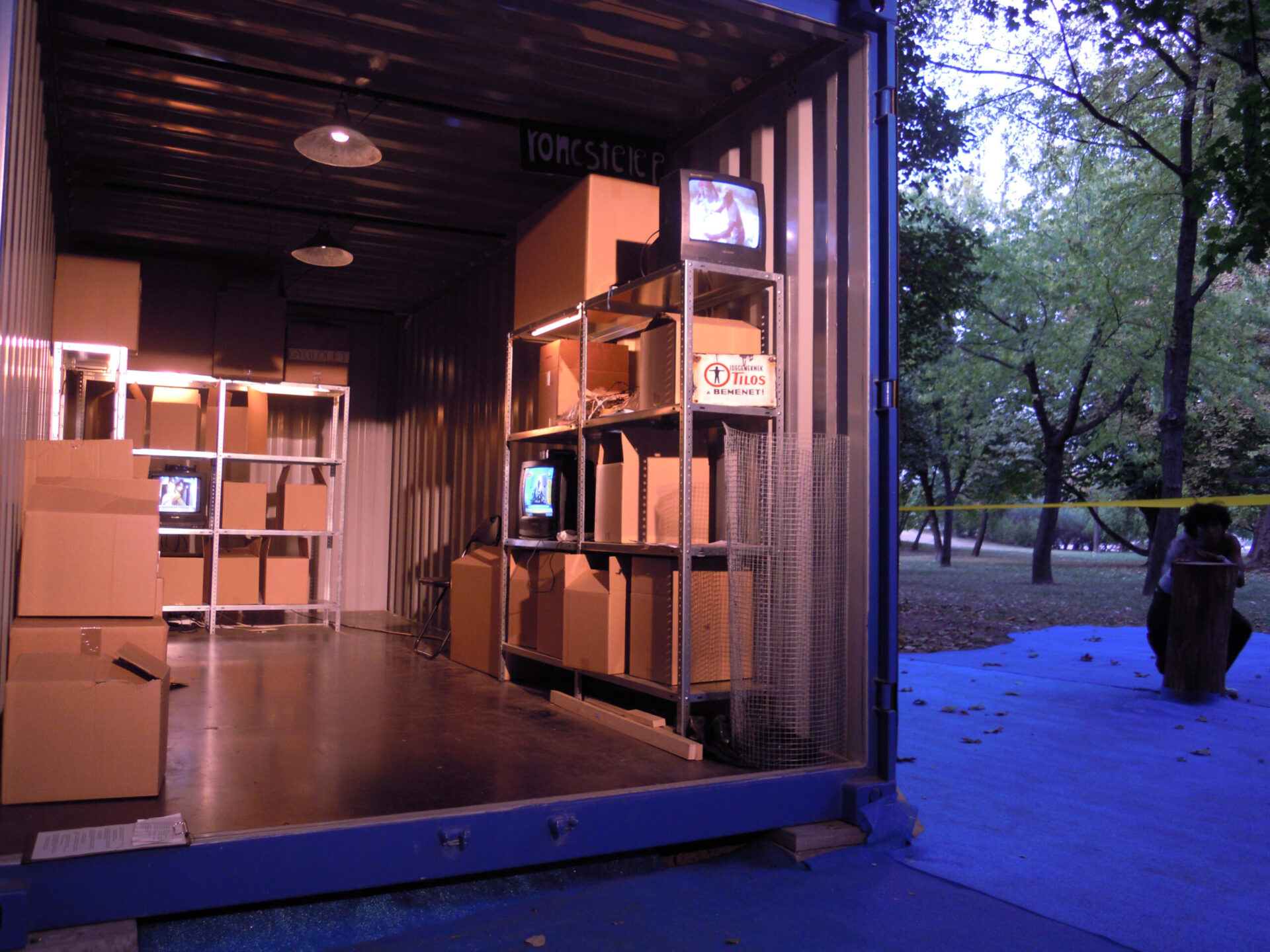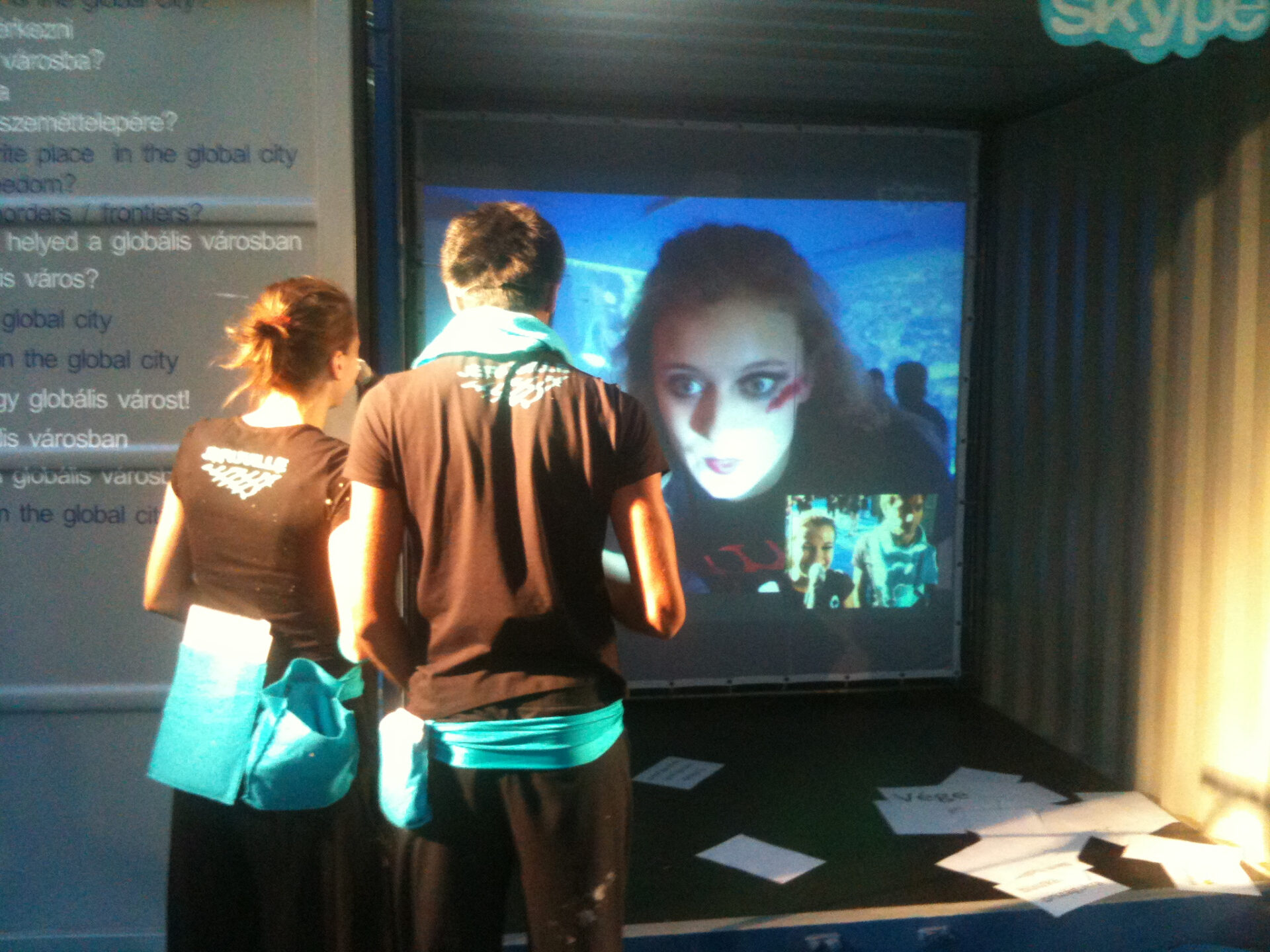 3 Years a container city in Germany and Hungary: 16 containers and 35 performers – in front of the Duesseldorfer State-Theater 35 young performers enact their scenes of reality, identity, religion, heritage. During the second year, the scenes were about reality in the internet – and what is the difference between reality and the internet? During the third year, the headquarter in Duesseldorf sent a container city to Budapest, Hungary, in order to discover the status of freedom. All characters (performers) had facebook profiles that extended the show into a year. The container cities were connected via Skype and the audience discovered one world, as well as the other.